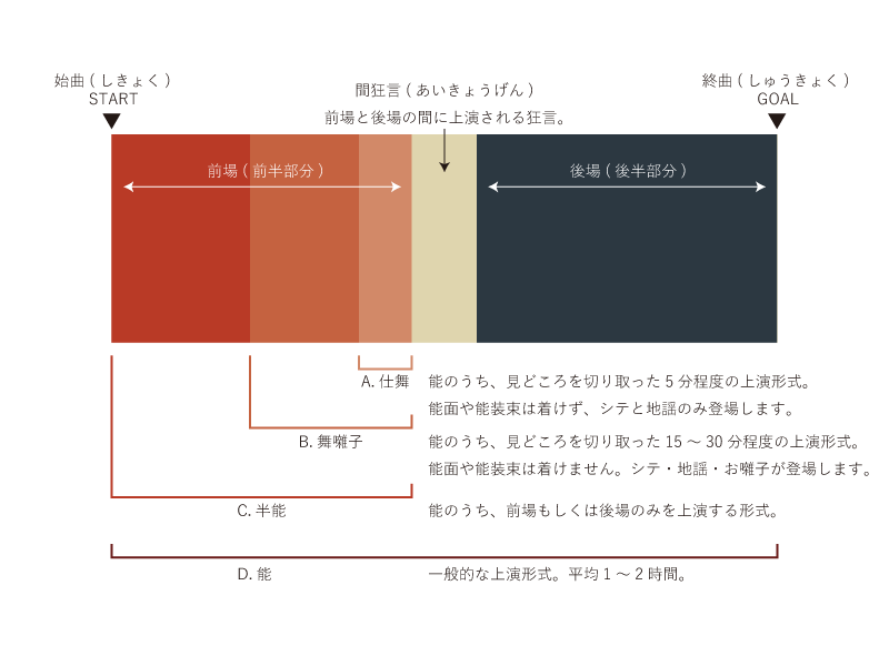 また、仕舞や舞囃子といった、様々な上演形式があります。
